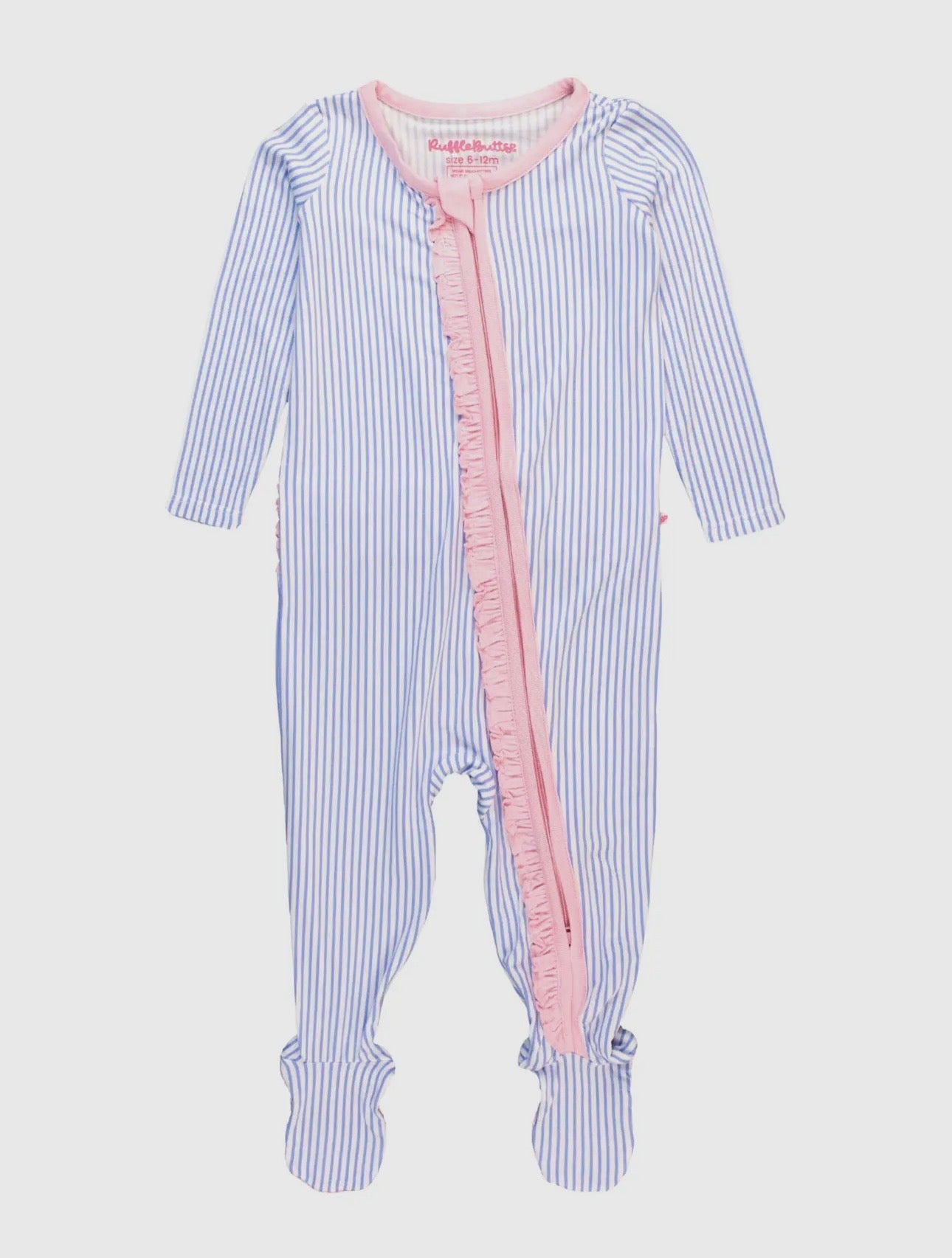 Baby Girl Bamboo Sleeper - Striped Footed Ruffles